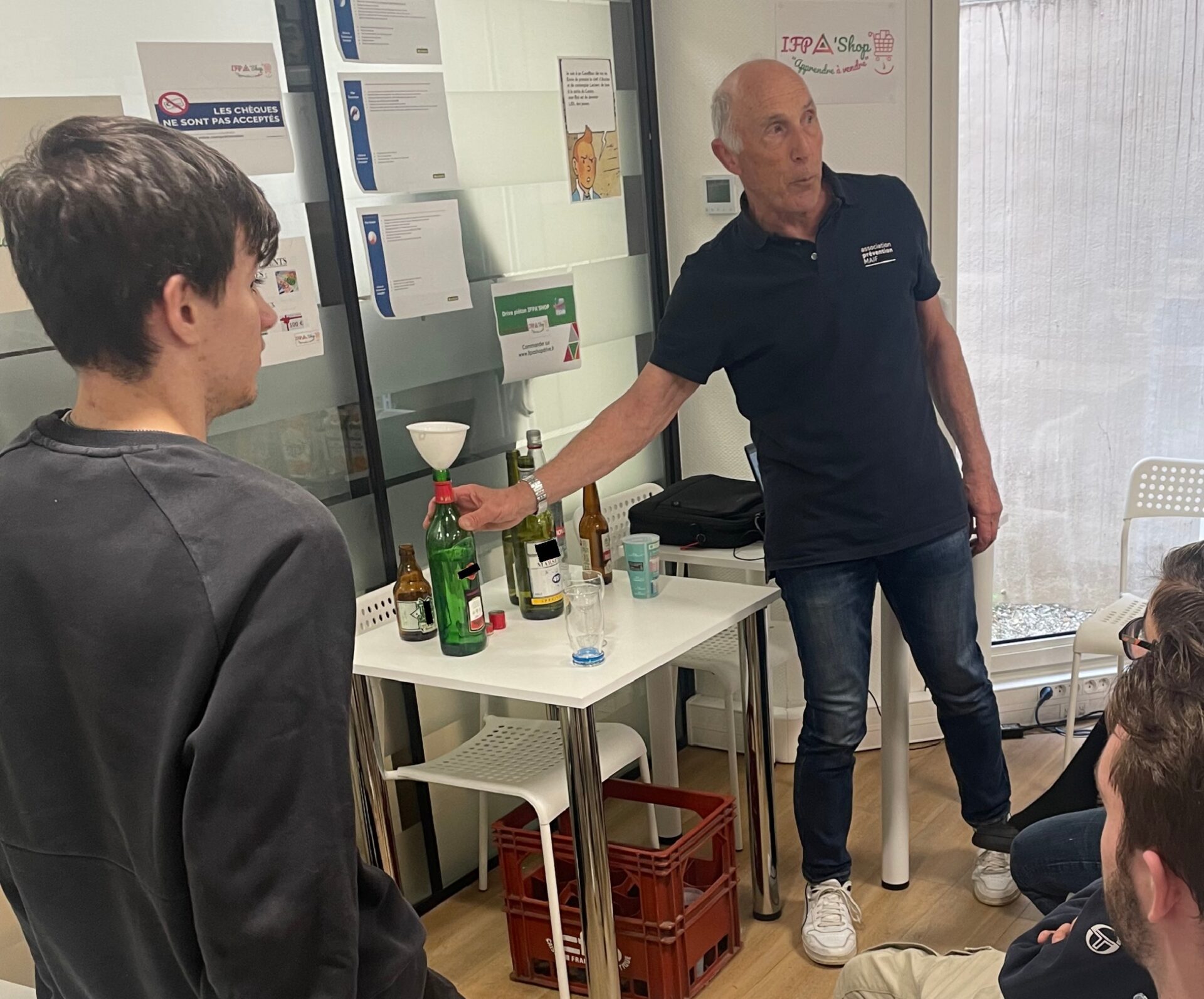 Les bouteilles présentées lors de l’atelier n’étaient pas là pour être consommées, mais pour illustrer les quantités d’alcool présentes dans différents types de boissons. Nos alternants ont pu observer concrètement comment les différentes doses affectent le taux d’alcool dans le sang, sans jamais avoir à boire quoi que ce soit. Cette approche permet de rendre le message plus visuel et facilement compréhensible. ⚖️